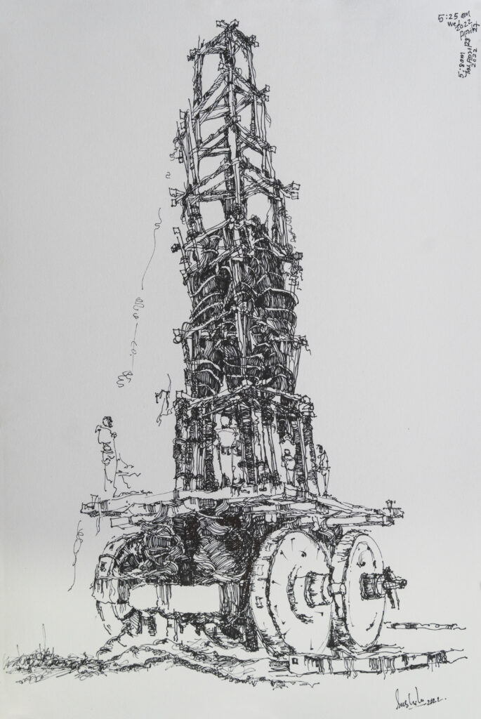 For Singh, shifting to a new medium is never a departure. She continues to cherish pen-and-ink, employing sequences reminiscent of chronophotography to document chariot festivals such as Rato and Seto Machhindranath, visually preserving their intangible cultural heritage.