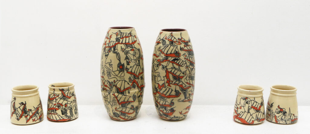 Alongside monochromatic drawings and ceramics, her work often incorporates installations, extending her exploration of form and absence: ‘I feel like we are inspired by what we are exposed to, and we get engaged with what is absent in them – an attempt to fill the gap.’